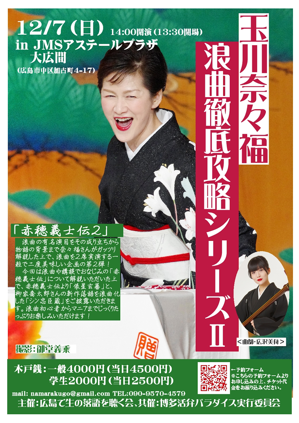 あの大人気シリーズが師走の広島に帰って来る! 今回は、赤穂義士銘銘伝より「俵星玄蕃」と喬太郎師匠のあの新作落語を浪曲化した「シン忠臣蔵」を実演いただきます!