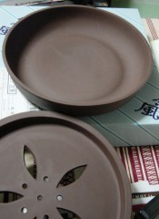▼茶盤:購入価格¥2000 (急須から溢れる湯を受けて溜めるもの。蓋付きなので、茶船タイプと違って急須がお湯につからなくてよいです。4〜5回使用。) | ||